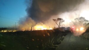 Pasadas las 19 hs, Bomberos Voluntarios realizan un trabajo táctico en la zona de propagación, incendiando a adrede para que no siga propagándose a las zonas aledañas y los daños sean aún mayores.
