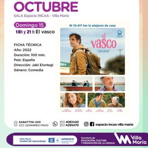 -21hs /Se proyecta el film «El vasco» en el INCAA / En El vasco, el espectador acompaña a Mikel, un joven de Bermeo que no es capaz de superar una ruptura reciente y decide mudarse a un pueblito cercano a Córdoba, Argentina, ante la oferta de trabajo de un familiar lejano. Su objetivo, de olvidarse de Euskadi, fracasará al llegar a una comunidad de descendientes de vascos obsesionados con una cultura que nunca han conocido y que lo ve como una especie de ser mitológico. Se filmó en buena parte, en Morrison. Elenco: Eduardo Blanco, Jose Usubiaga, Ines