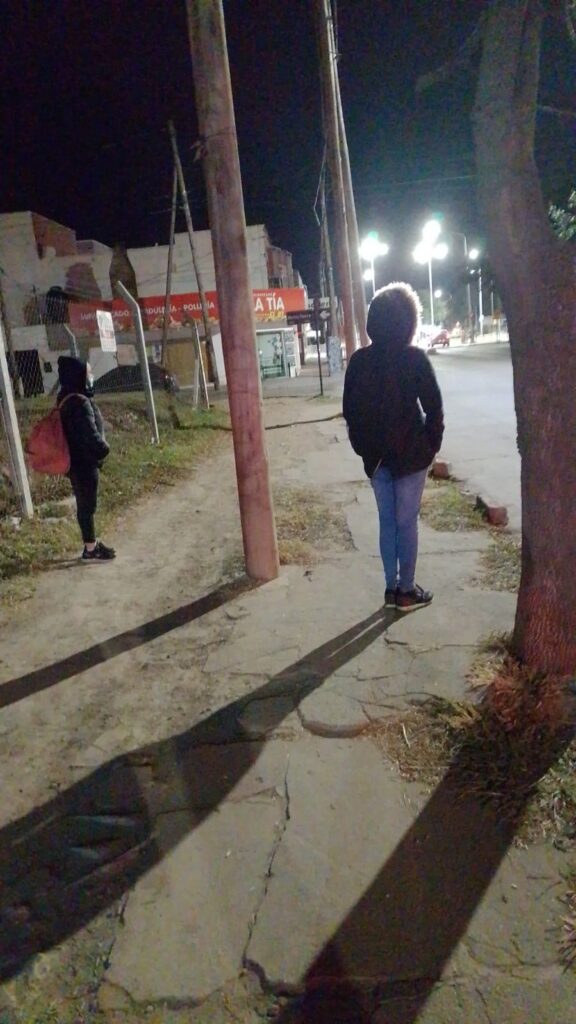 Ella y otros usuarios de la línea de colectivo que pasa por el lugar, con temperaturas bajo cero esperan allí por el transporte que los lleve al colegio o a sus lugares de trabajo. Con la llovizna o lluvia también se los ve parados allí.