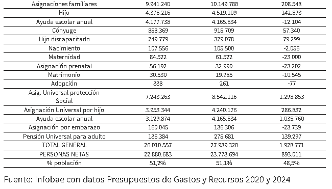 Se trata de un universo de 28 millones de perceptores de recursos monetarios de la Anses cada 30 días que comprende a 23,8 millones de personas (algunos se duplican), equivalente a 51,1% del total de habitantes del país. Se elevó en los 4 años de presidencia del Frente de Todos en 7,4% y 3,9%, respectivamente. En ese período, según la proyección del crecimiento intercensal que informó el Indec, la población del país aumentó 4,1 por ciento.