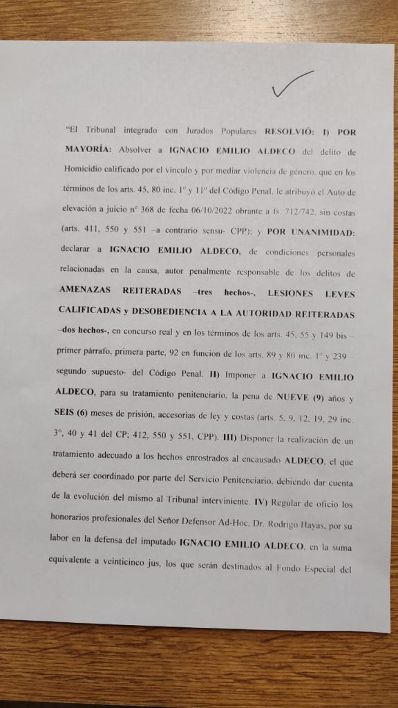 Un fallo  particular tuvo el juicio por la muerte de Liliana Stefanatto cuando la Justicia resolvió no acusar a Ignacio Aldeco por el femicidio pero lo condenaron por los episodios de violencia. Por tal razón, Aldeco fue condenado a 9 años y medio de prisión, pero no por el homicidio, sino por las denuncias anteriores que la víctima había realizado por violencia.