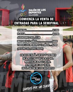 El Club Deportivo Ameghino comunicó que ya se pueden adquirir las anticipadas para acompañar al León en el primer partido de la semifinal de la Conferencia Norte de la Liga Argentina, el próximo martes 2 de mayo en el Salón de los Deportes.