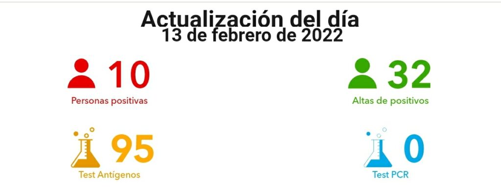 Este domingo se cerró la jornada con 10 nuevos casos positivos, luego que se realizaran 95 test antígenos. De alta fueron dados 32 personas que habían tenido el covid.