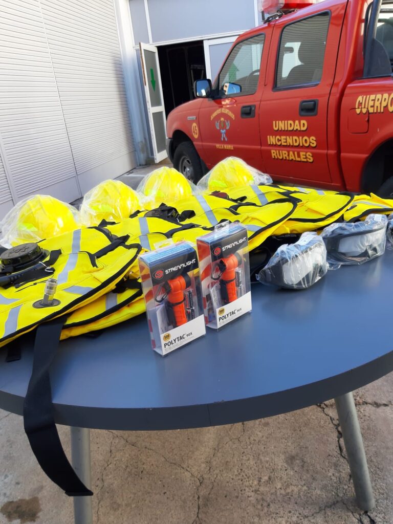Alfonso Mosquera, Ministro de Seguridad de la Provincia y el Secretario de Gestión de Riesgo Claudio Vignetta, visitaron el Cuartel de Bomberos Voluntarios de Villa María para traer materiales y herramientas que ayudarán a combatir los incendios forestales entregando un Kit Forestal como así también otro tipo de elementos necesarios para todo tipo de siniestros.
