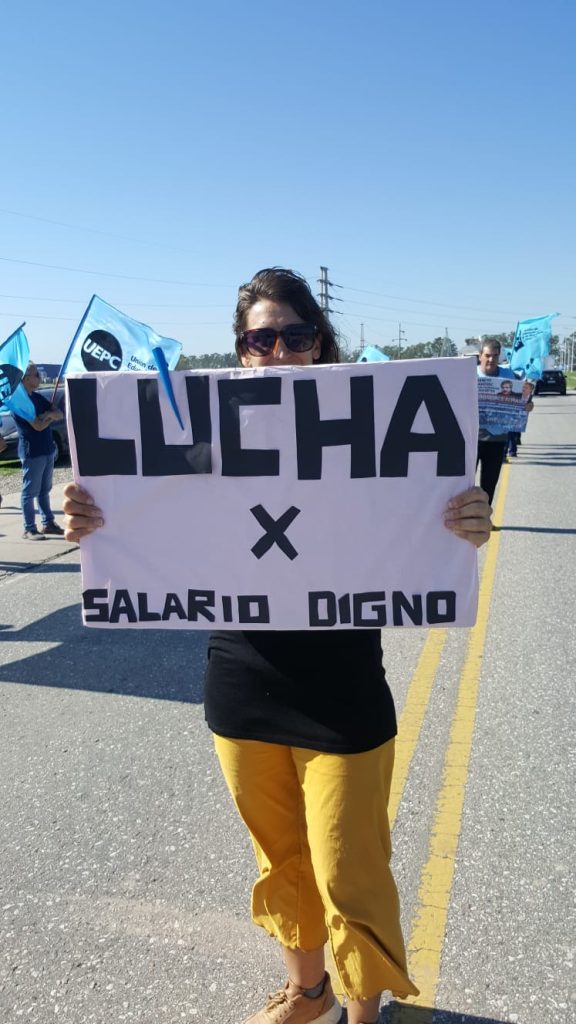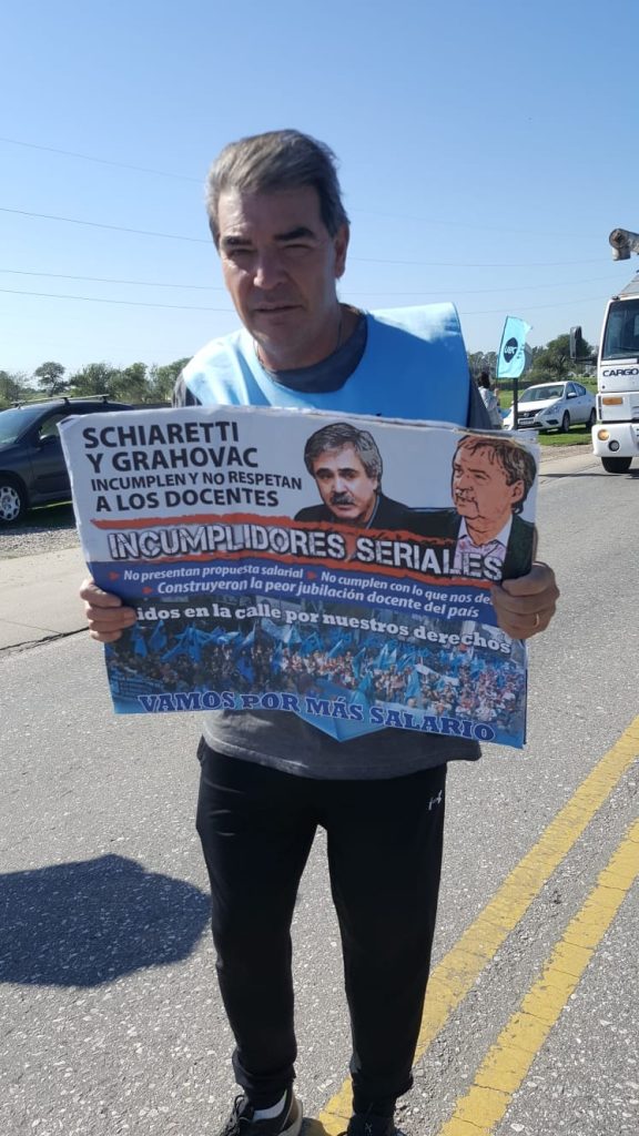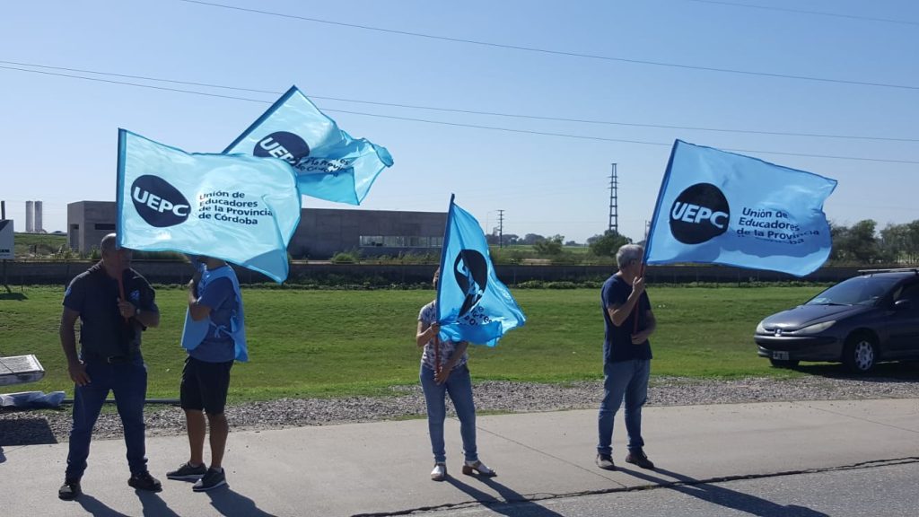 En un día en el que el dictado de las clases es normal, delegados departamentales de la UEPC se movilizaron esta mañana en la intersección de la Ruta 158 y autopista para seguir reclamando mejores salarios para los docentes provinciales.