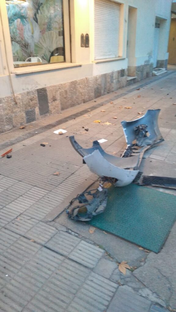 La mujer que iba en moto, quedó consciente, pero acusaba un fuerte golpe, por lo que fue trasladada en ambulancia al Hospital Pasteur. Natalia, del Bar de esa esquina, comentó detalles del accidente, ya que el parante protector y las macetas de la vereda sufrieron daños totales.