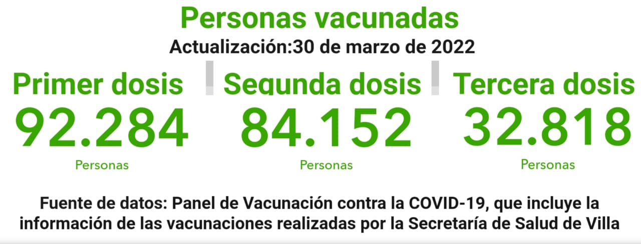 Es importante destacar que continúa con gran avance la campaña de vacunación que ya llegó a más de 92.000 vecinos con al menos una dosis aplicada, más de 84.000 con dos, más de 32.000 con tres dosis y más de 19.000 personas vacunadas menores de 18 años.