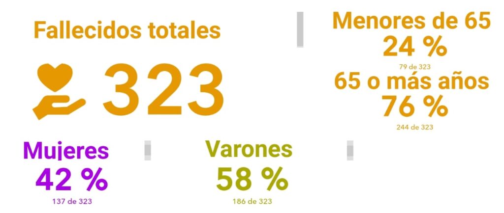 Según datos actualizados del Registro Civil, hasta la fecha son 323 las personas que perdieron la vida por covid en la ciudad desde el inicio de la pandemia. El promedio de edad de los vecinos fallecidos es de 73 años.