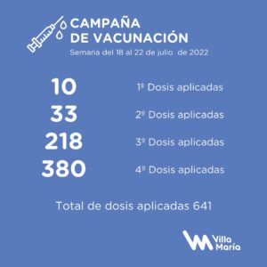 De acuerdo a los datos brindados por el área de salud de la municipalidad de Villa María, los datos de la ultima semana son estos: