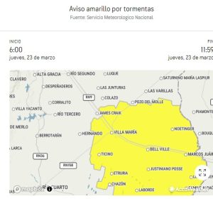 El Servicio Meteorológico nacional emitió un alerta meteorológico para nuestra zona, que estará vigente hasta el mediodía del jueves.