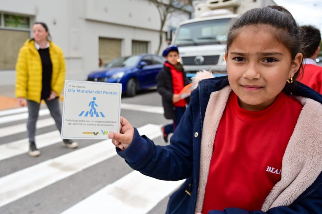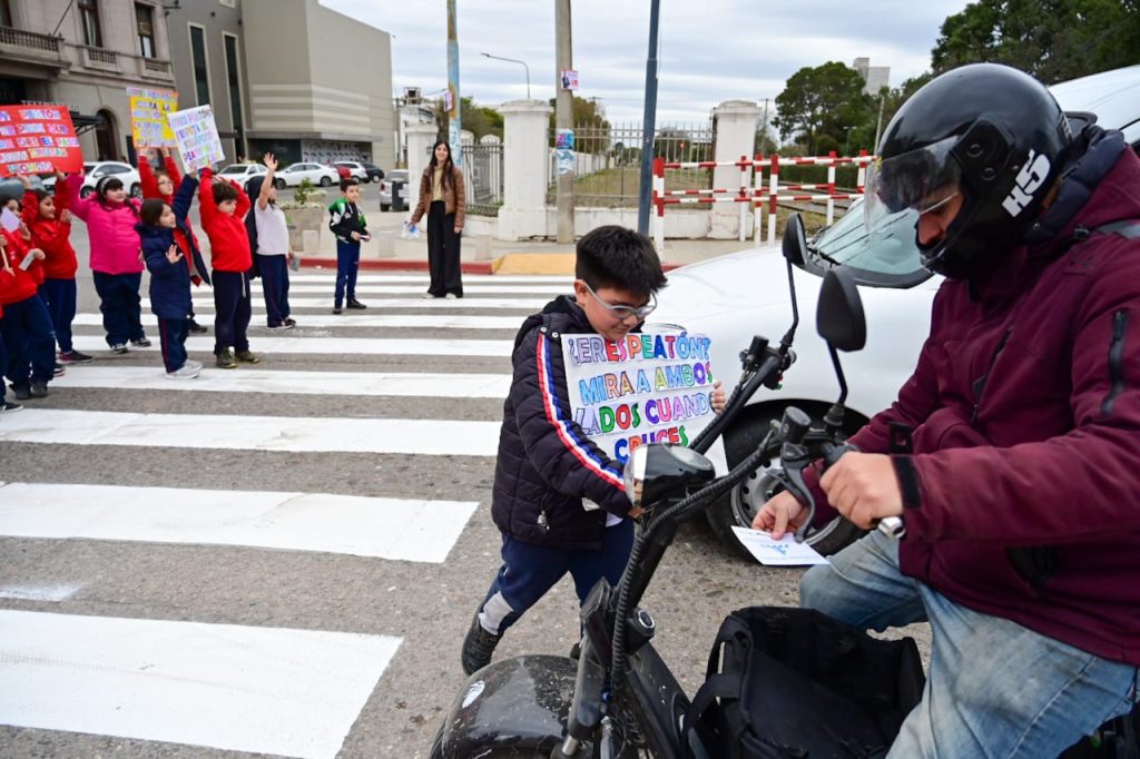 La iniciativa, que se desarrolló durante la mañana y se replicará en las primeras horas de la tarde, tuvo por finalidad generar conciencia vial, tanto de peatones como conductores. A tal efecto, alumnos de tercer grado de la institución educativa junto al equipo de Educación Vial del municipio, repartieron a transeúntes y conductores folletos con consejos alusivos al día; y cuando el semáforo marcaba en rojo, los niños se apostaron en la senda peatonal y exhibieron los carteles con frases reflexivas, generando así un impacto visual de concientización.