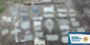 De inmediato se dispuso un operativo cerrojo en la zona, arrojando resultado positivo al proceder al control de un camión Ford 350, que circulaba con estas tres personas, respondiendo a las características mencionadas y además, mantenían en su poder aproximadamente 35 placas y herramientas como martillo, una barreta y un corta fierro, entre otros efectos que se vinculan a este hecho.
