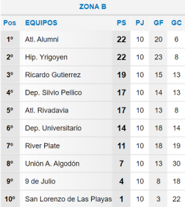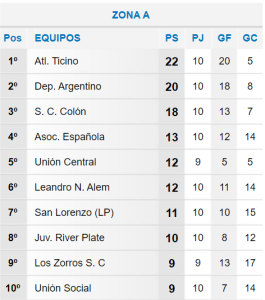 De esta manera, las posiciones finales de cada zona son las siguiente. Teniendo en cuenta que en la tabla no figura el partido que se le dio ganado a Unión Central y los tres puntos que se le descontaron a San Lorenzo de Las Perdices.