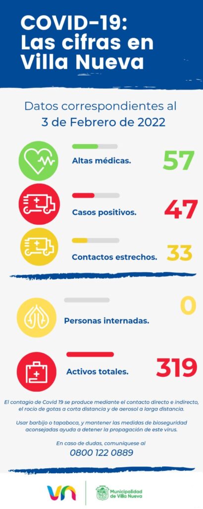 Compartir en redesLos datos epidemiológicos del jueves 3 de febrero son los siguientes: Villa Nueva Villa María En la misma Categoría:Accastello participó de la asunción de autoridades de la UTN localSe presentó la Edición 2026 de la Feria Educativa Conectando SaberesAccidente en la prolongación del Bv. Alvear ayer al mediodíaChoque en Barrio San Martín con una mujer heridaEl municipio acompañó una jornada de visibilización y concientización sobre el a...Más de 100 vecinos participan de los talleres que brinda la TecnotecaCompartir en redes