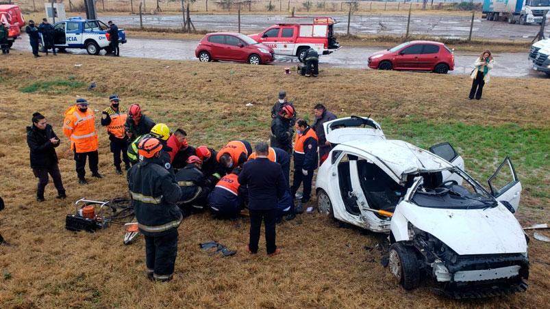 Dos de los efectivos pudieron salir, pero el agente que iba en el asiento trasero quedó atrapado. Personal de bomberos y del Grupo Especial de Salvamento (GES) tuvieron que cortar parte del vehículo para rescatar al joven herido. Los tres están fuera de peligro.